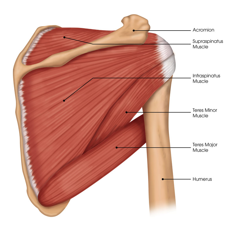 Figure 2: Deep rotator cuff muscles, rear view, Supraspinatus, Infraspinatus, and Teres Minor (rotator cuff muscles)